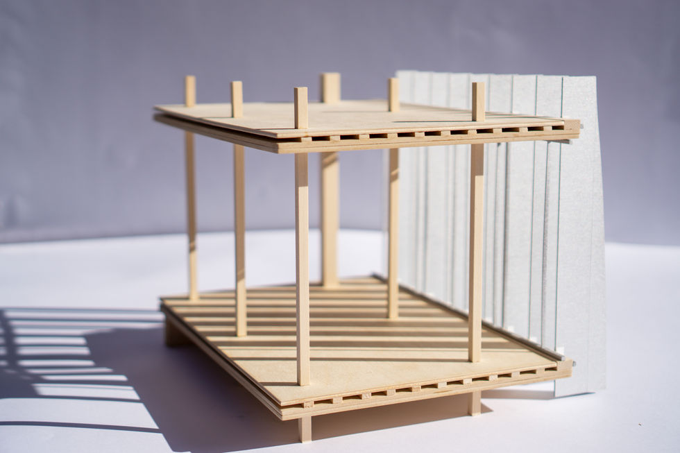 The project sits on the site of 902 E Third St, Los Angeles, CA surrounded by popular destinations such as Hauser & Wirth and Salt & Straw. The structure is inspired by natural leaf growth on plants, a 137.5 degree rotation that maximizes sunlight between floors. The rotation creates double-height spaces that carry the shared/communal programs within the building. The facade is a system of fins contoured from a drip massing with drips to avoid spaces that warranted natural lighting such as double height shared spaces. The project intermingles public and private floors allowing for a casual mixture between art organization offices and the art public.